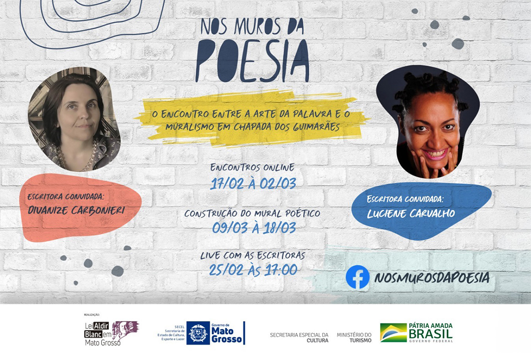 O projeto Nos Muros da Poesia promove o diálogo entre Literatura e Artes Visuais, unindo a poesia contemporânea das escritoras Luciene Carvalho e Divanize Carbonieri à arte muralista de diversos artistas. O projeto ofereceu uma oficina dedicada ao estudo das obras das poetas e muralistas selecionados a estudantes do município e resultou na criação de um mural poético na Escola Estadual Cel. Rafael de Siqueira. Além disso, o projeto promoveu uma live aberta ao público com as duas escritoras e distribuiu obras literárias aos participantes, ampliando o impacto cultural e educacional da ação.